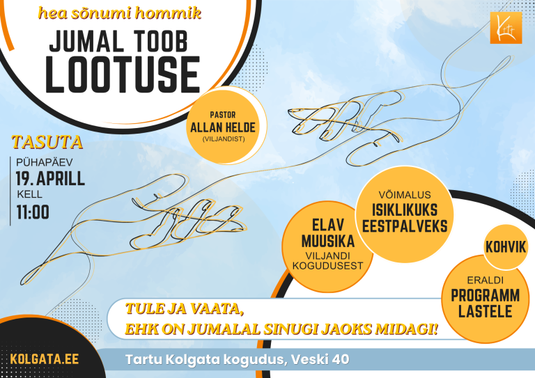 Tere tulemast osa saama hea sõnumi hommikust pühapäeval, 19. aprillil kell 11. Maailmas ja meie inimlikes eludes on palju ebakindlust,